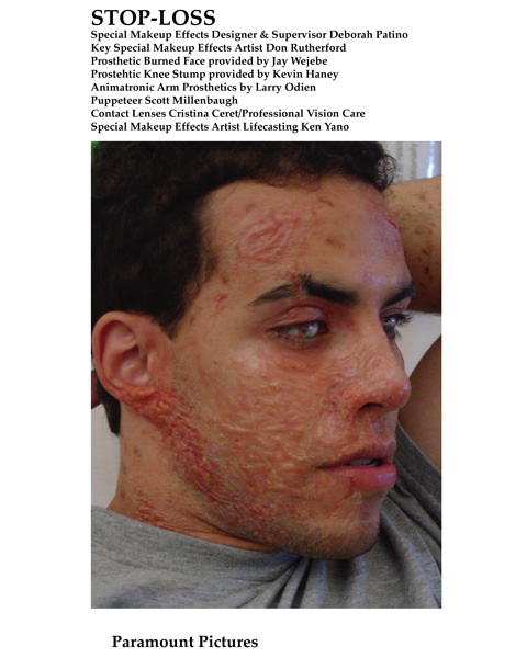 Stop Loss Credits August 8, 2018 480 × 600 Effects/Character Victor Rasuk “Stop-Loss” Make-up Designer: The Rutherfords, Prosthetics Jay Wejebe, Contact Lenses Cristina Patterson Share this: Share on X (Opens in new window) X Share on Facebook (Opens in new window) Facebook Email a link to a friend (Opens in new window) Email Share on Pinterest (Opens in new window) Pinterest Share on LinkedIn (Opens in new window) LinkedIn Like Loading...