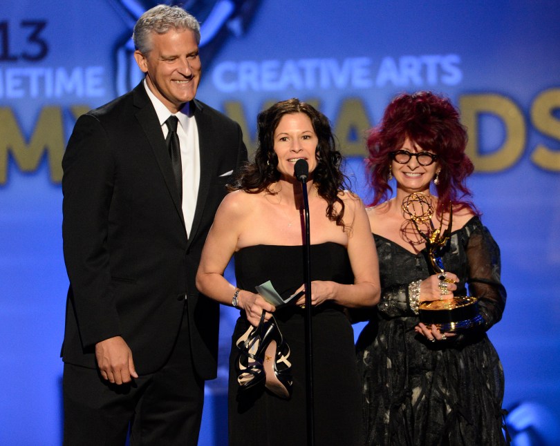 From left, Todd Kleitsch, Deborah Rutherford and Deborah Lamia Denaver accept the award for Outstanding Makeup for a Miniseries or a Movie (Non-Prosthetic) for Behind The Candelabra onstage at the 2013 Primetime Creative Arts Emmy Awards, on Sunday, September 15, 2013 at Nokia Theatre L.A. Live, in Los Angeles, Calif. (Photo by Phil McCarten/Invision for Academy of Television Arts & Sciences/AP Images)